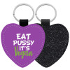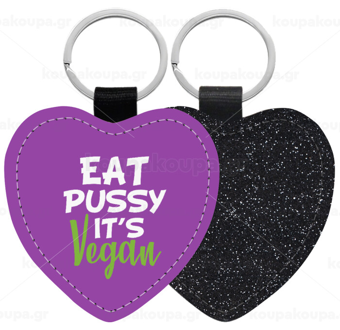 EAT pussy it's vegan, Μπρελόκ PU δερμάτινο glitter καρδιά ΜΑΥΡΟ