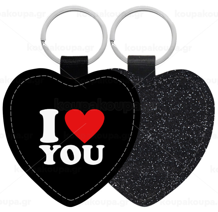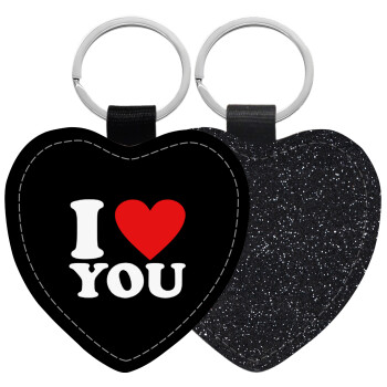 I LOVE YOU, Μπρελόκ PU δερμάτινο glitter καρδιά ΜΑΥΡΟ