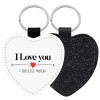 I Love you thisssss much, Μπρελόκ PU δερμάτινο glitter καρδιά ΜΑΥΡΟ