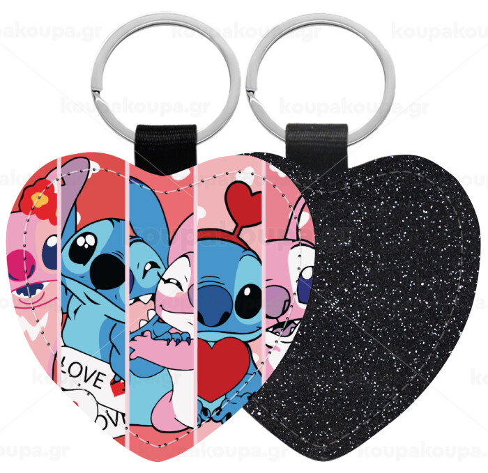 Lilo & Stitch Love, Μπρελόκ PU δερμάτινο glitter καρδιά ΜΑΥΡΟ