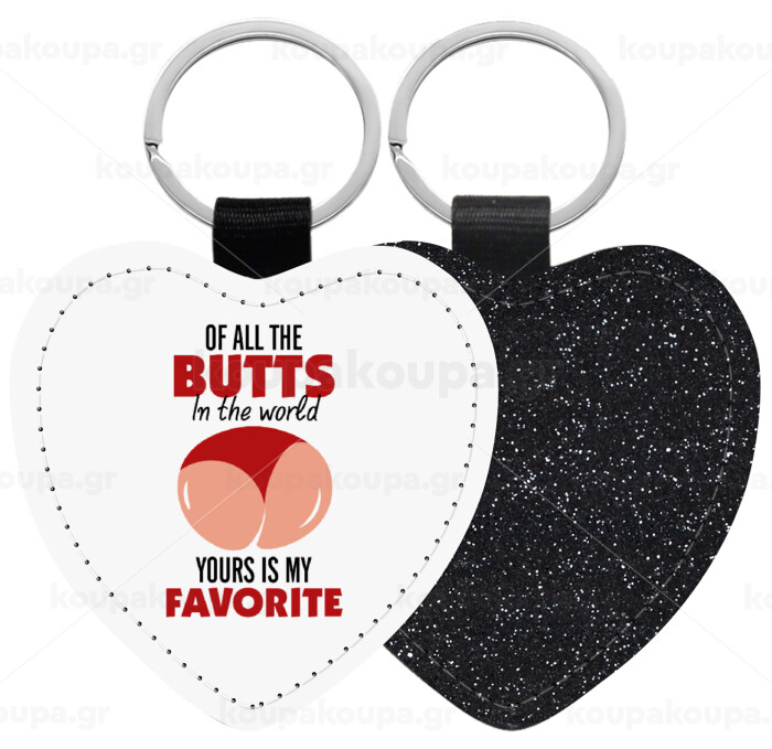 Of all the Butts in the world, your's is my favorite, Μπρελόκ PU δερμάτινο glitter καρδιά ΜΑΥΡΟ