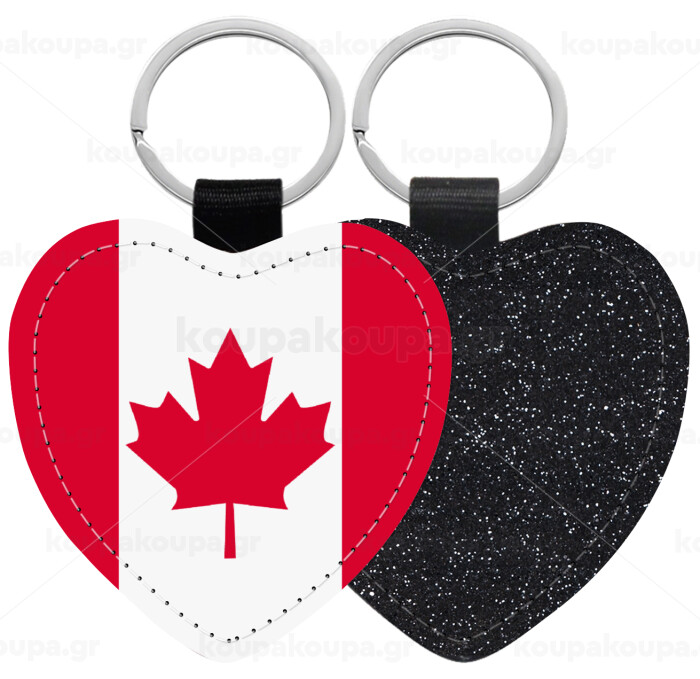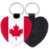 Canada flag, Μπρελόκ PU δερμάτινο glitter καρδιά ΜΑΥΡΟ