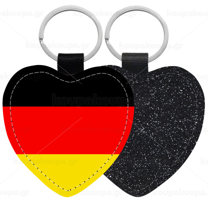 Germany flag, Μπρελόκ PU δερμάτινο glitter καρδιά ΜΑΥΡΟ
