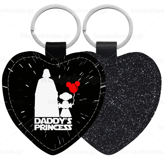 Daddy's princess, Μπρελόκ PU δερμάτινο glitter καρδιά ΜΑΥΡΟ