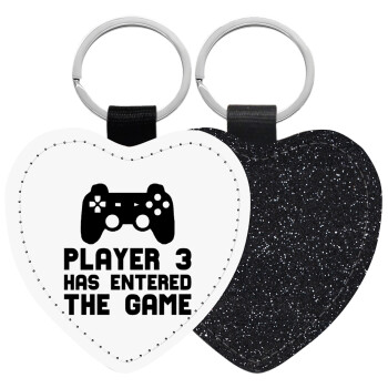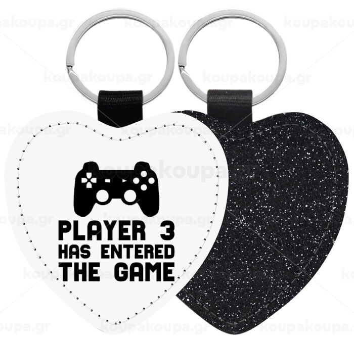 Player 3 has entered the Game, Μπρελόκ PU δερμάτινο glitter καρδιά ΜΑΥΡΟ