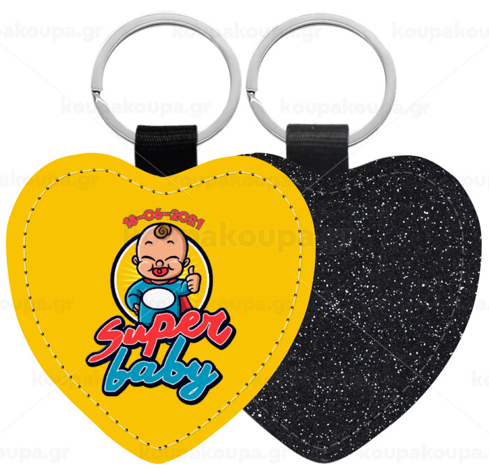 Super baby., Μπρελόκ PU δερμάτινο glitter καρδιά ΜΑΥΡΟ