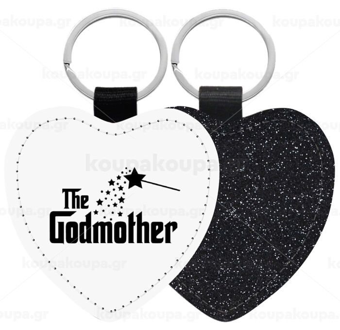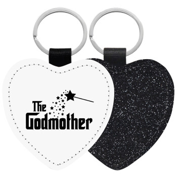 Fairy GodMother, Μπρελόκ PU δερμάτινο glitter καρδιά ΜΑΥΡΟ