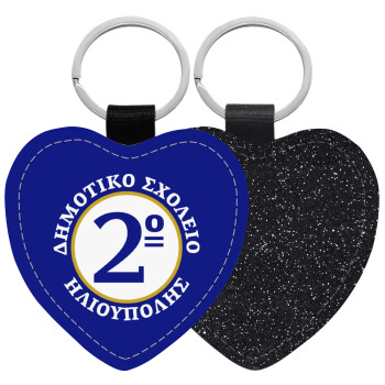 Έμβλημα Σχολικό μπλε/χρυσό, Μπρελόκ PU δερμάτινο glitter καρδιά ΜΑΥΡΟ
