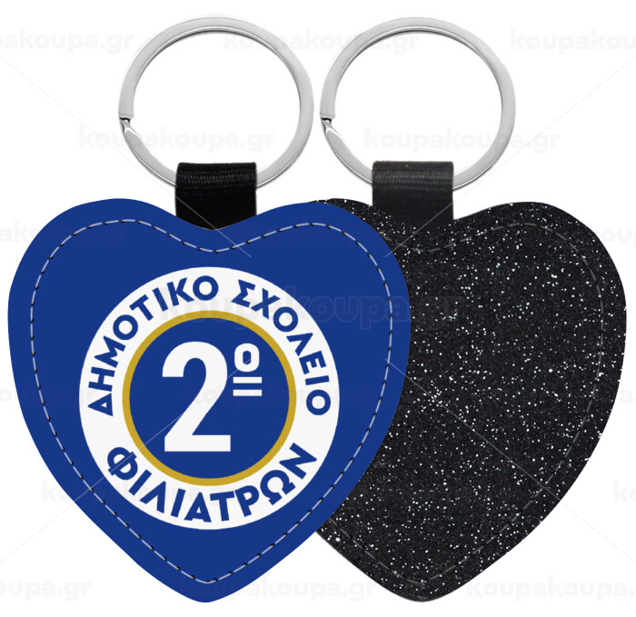 Έμβλημα Σχολικό μπλε κλασική, Μπρελόκ PU δερμάτινο glitter καρδιά ΜΑΥΡΟ