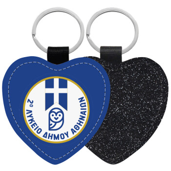 Έμβλημα Σχολικό μπλε owl, Μπρελόκ PU δερμάτινο glitter καρδιά ΜΑΥΡΟ