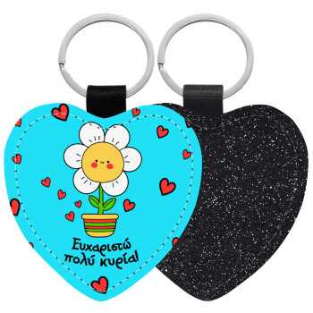 Ευχαριστώ πολύ κυρία!!!, Μπρελόκ PU δερμάτινο glitter καρδιά ΜΑΥΡΟ