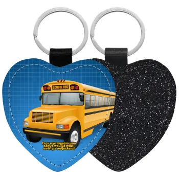 Στον αγαπημένο μου οδηγό σχολικού!, Μπρελόκ PU δερμάτινο glitter καρδιά ΜΑΥΡΟ