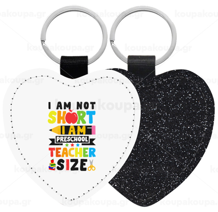 I Am Not Short I Am Preschool Teacher Size, Μπρελόκ PU δερμάτινο glitter καρδιά ΜΑΥΡΟ