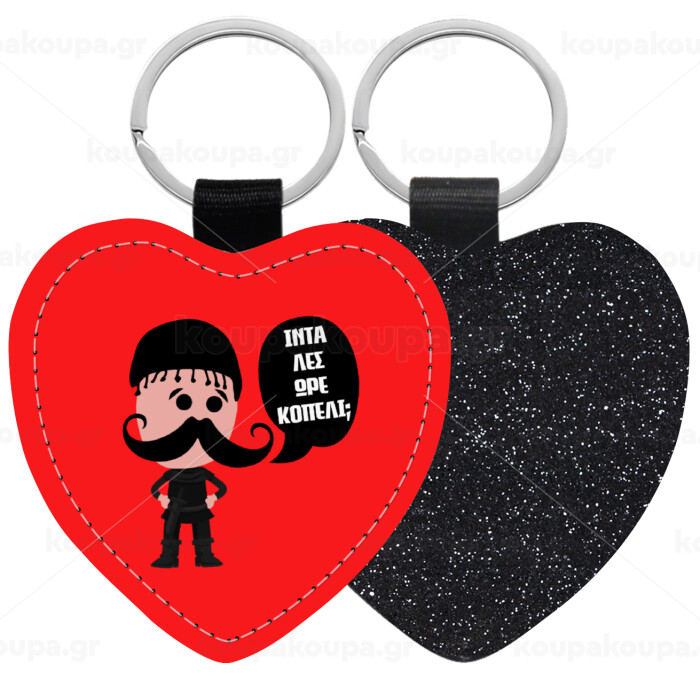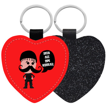 Κρητικός "Ίντα λες ωρέ κοπέλι", Μπρελόκ PU δερμάτινο glitter καρδιά ΜΑΥΡΟ