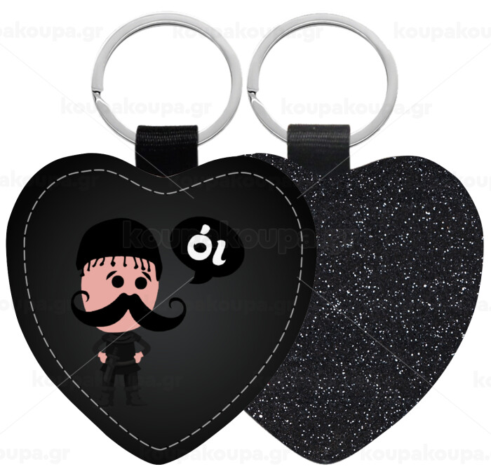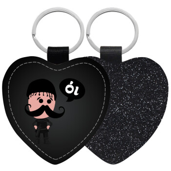 Κρητικός "Οι", Μπρελόκ PU δερμάτινο glitter καρδιά ΜΑΥΡΟ