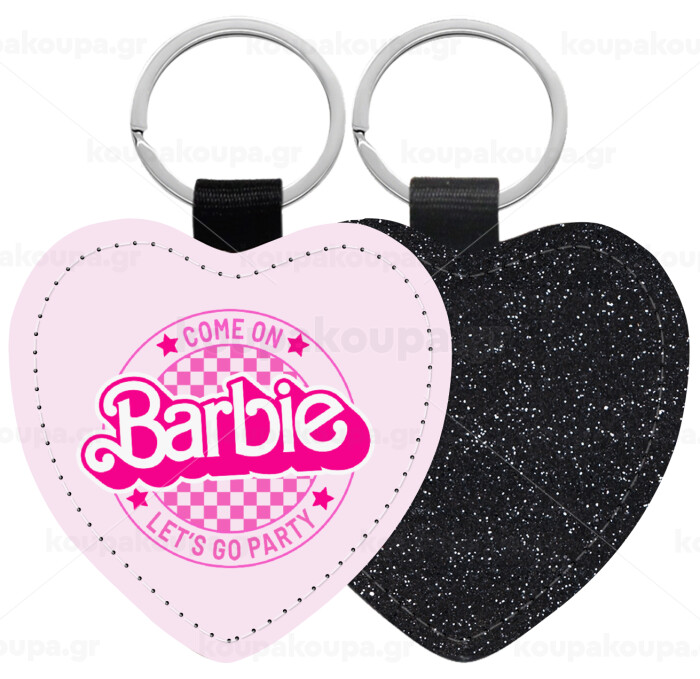 Come On Barbie Lets Go Party , Μπρελόκ PU δερμάτινο glitter καρδιά ΜΑΥΡΟ