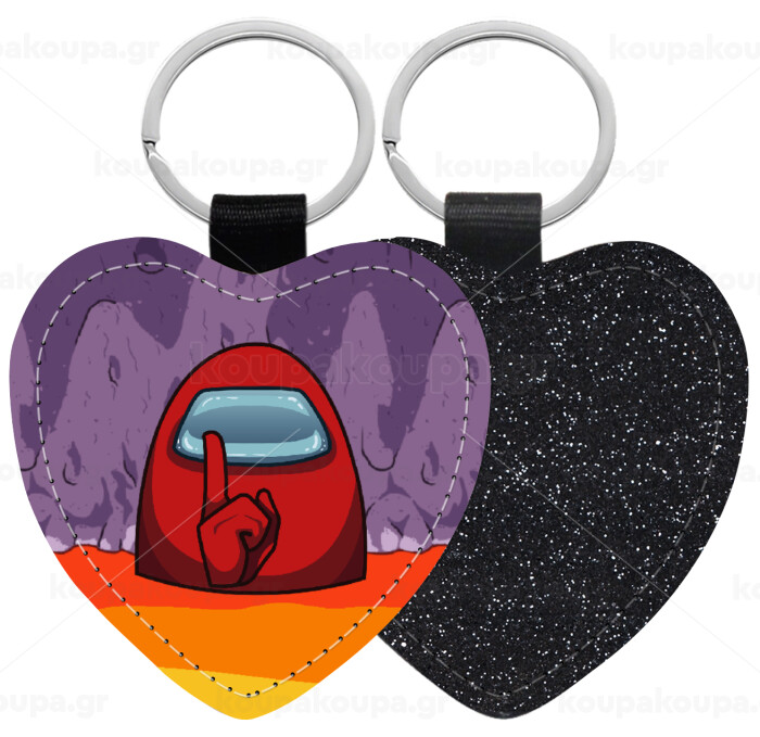 Among US, Μπρελόκ PU δερμάτινο glitter καρδιά ΜΑΥΡΟ