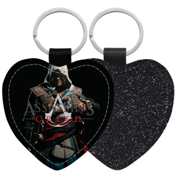 Assassin's Creed, Μπρελόκ PU δερμάτινο glitter καρδιά ΜΑΥΡΟ