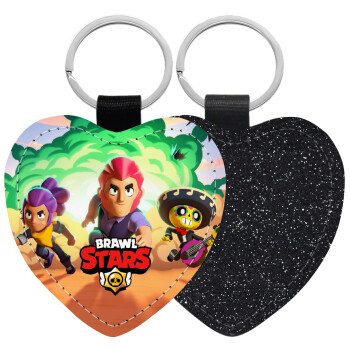 Brawl Stars Desert, Μπρελόκ PU δερμάτινο glitter καρδιά ΜΑΥΡΟ