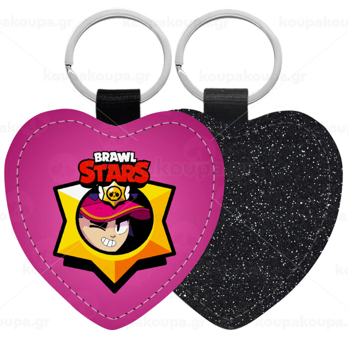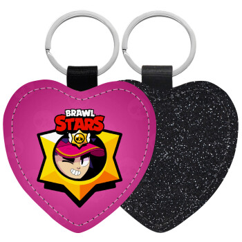 Brawl Stars Fang, Μπρελόκ PU δερμάτινο glitter καρδιά ΜΑΥΡΟ