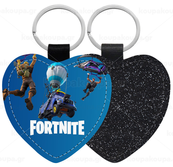 Fortnite Bus, Μπρελόκ PU δερμάτινο glitter καρδιά ΜΑΥΡΟ