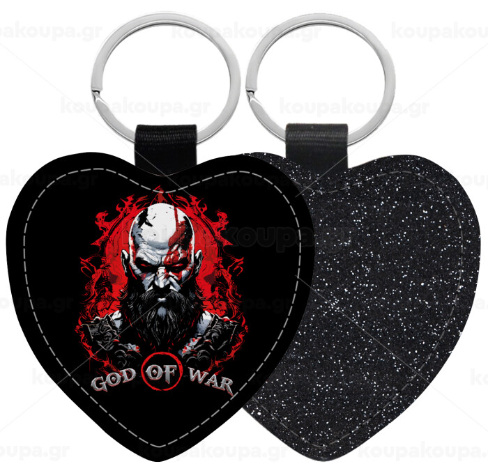 God of war, Μπρελόκ PU δερμάτινο glitter καρδιά ΜΑΥΡΟ