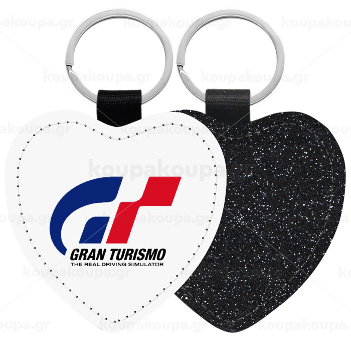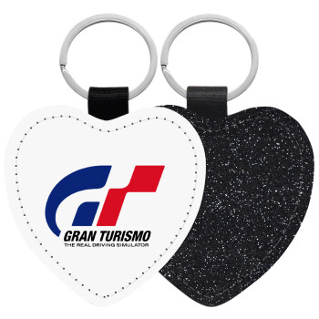 gran turismo, Μπρελόκ PU δερμάτινο glitter καρδιά ΜΑΥΡΟ