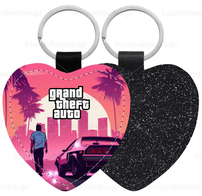 GTA (grand theft auto), Μπρελόκ PU δερμάτινο glitter καρδιά ΜΑΥΡΟ