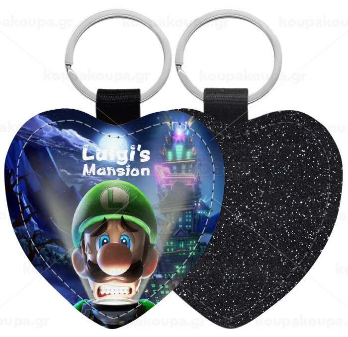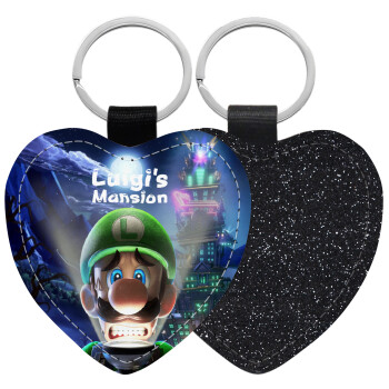 Luigi's Mansion, Μπρελόκ PU δερμάτινο glitter καρδιά ΜΑΥΡΟ