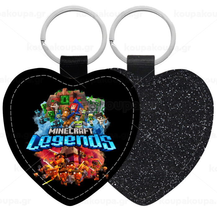 Minecraft legends, Μπρελόκ PU δερμάτινο glitter καρδιά ΜΑΥΡΟ