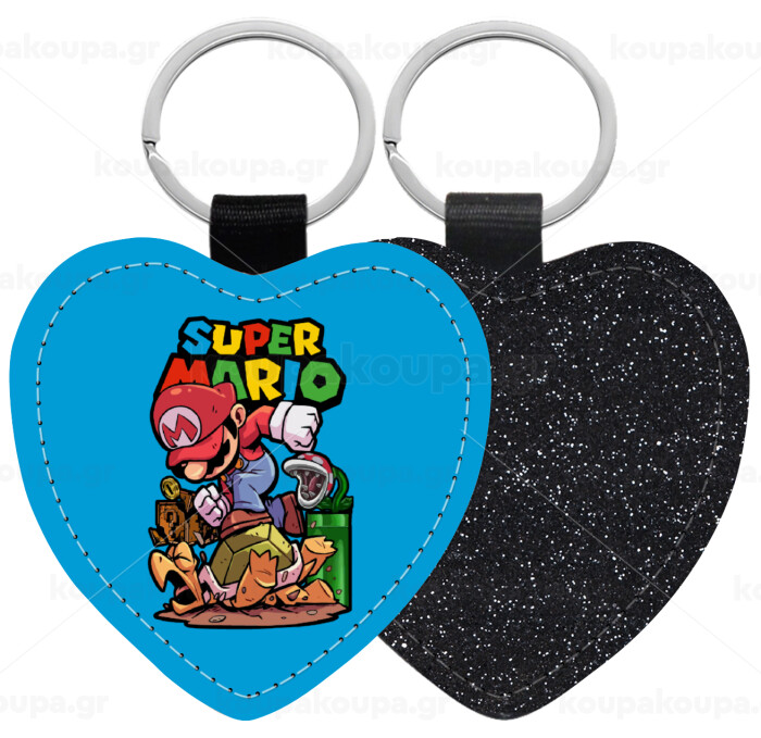 Super mario Jump, Μπρελόκ PU δερμάτινο glitter καρδιά ΜΑΥΡΟ