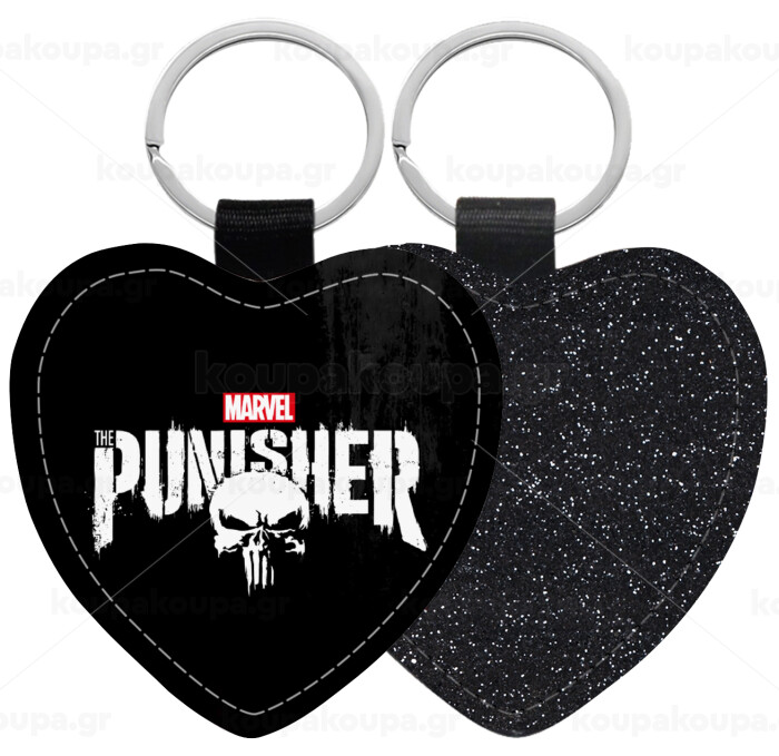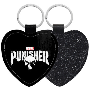 The punisher, Μπρελόκ PU δερμάτινο glitter καρδιά ΜΑΥΡΟ