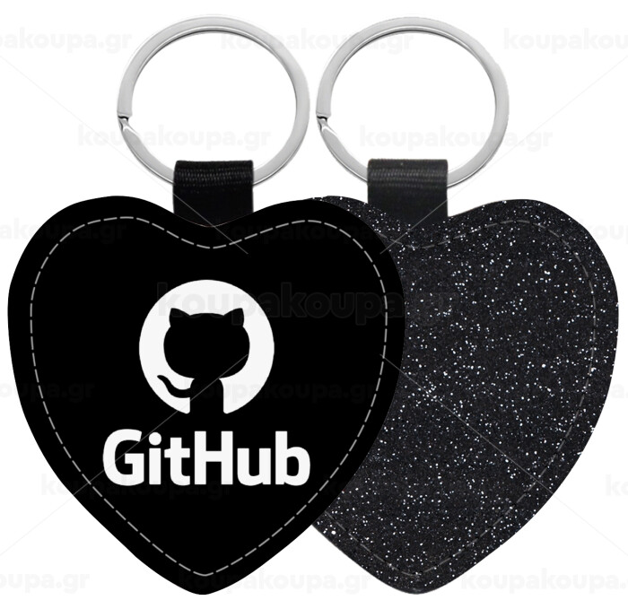 GitHub, Μπρελόκ PU δερμάτινο glitter καρδιά ΜΑΥΡΟ