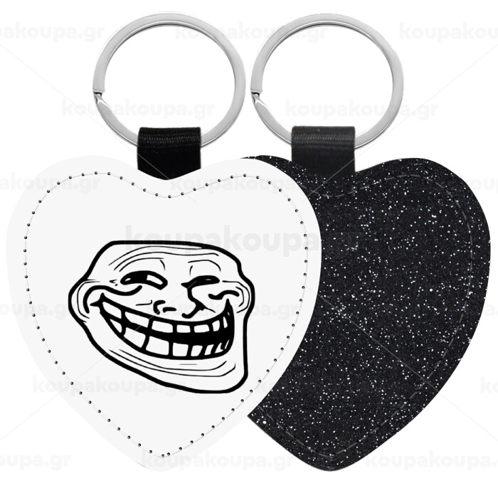 Troll face, Μπρελόκ PU δερμάτινο glitter καρδιά ΜΑΥΡΟ