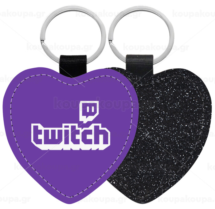 Twitch, Μπρελόκ PU δερμάτινο glitter καρδιά ΜΑΥΡΟ