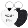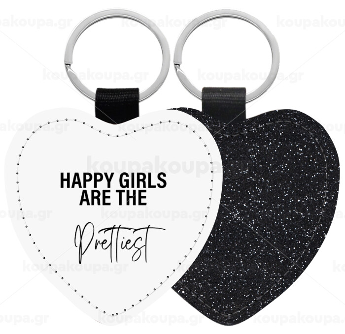 Happy girls are the prettiest, Μπρελόκ PU δερμάτινο glitter καρδιά ΜΑΥΡΟ