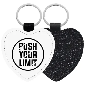 Push your limit, Μπρελόκ PU δερμάτινο glitter καρδιά ΜΑΥΡΟ
