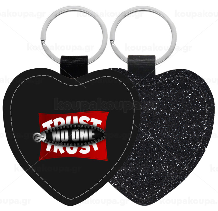 Trust no one... (zipper), Μπρελόκ PU δερμάτινο glitter καρδιά ΜΑΥΡΟ