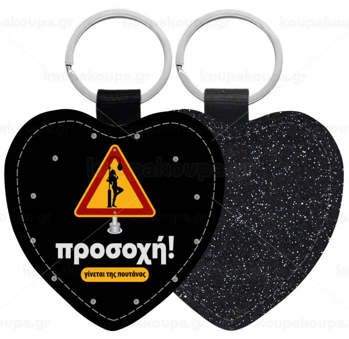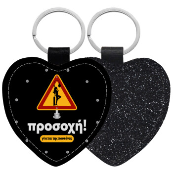Προσοχή Γίνεται της πουτ.νας, Μπρελόκ PU δερμάτινο glitter καρδιά ΜΑΥΡΟ