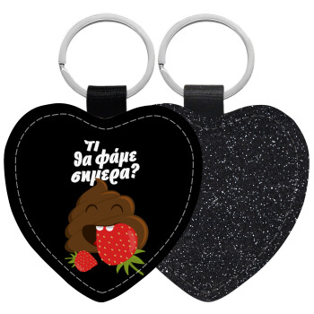 Τι θα φάμε σημερα???, Μπρελόκ PU δερμάτινο glitter καρδιά ΜΑΥΡΟ
