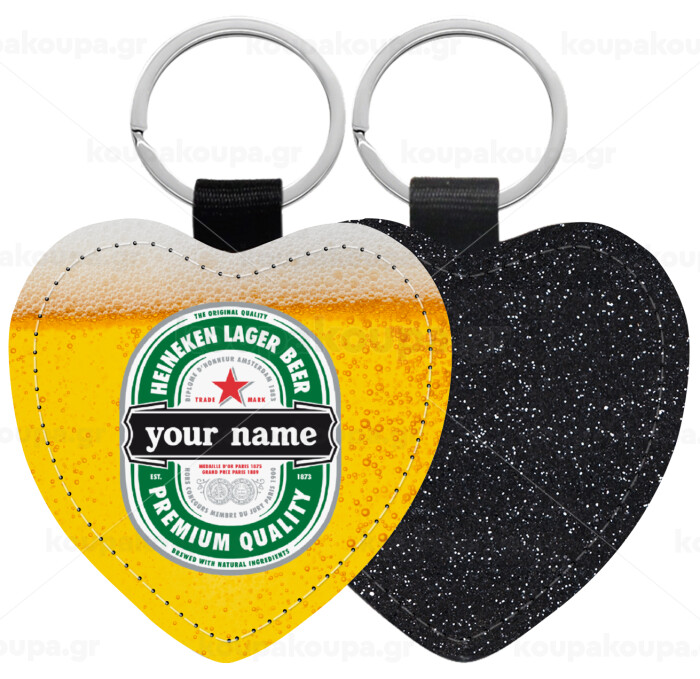 Heineken με όνομα, Μπρελόκ PU δερμάτινο glitter καρδιά ΜΑΥΡΟ