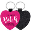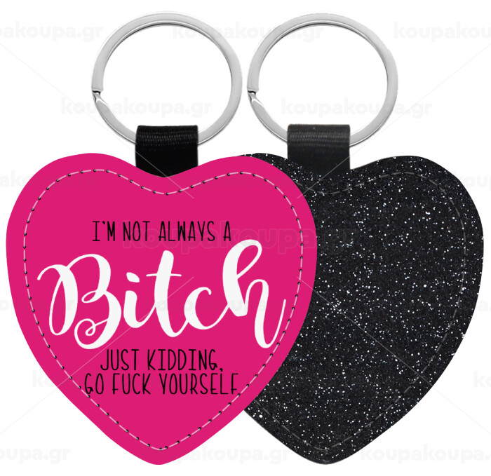 I'm not always a bitch, just kidding go f..k yourself , Μπρελόκ PU δερμάτινο glitter καρδιά ΜΑΥΡΟ