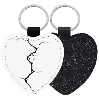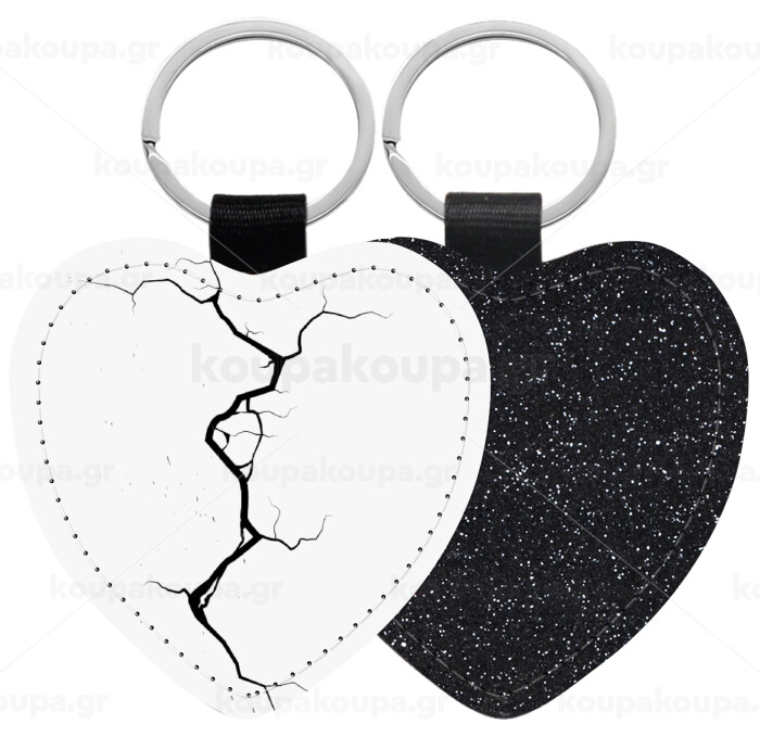 Cracked, Μπρελόκ PU δερμάτινο glitter καρδιά ΜΑΥΡΟ