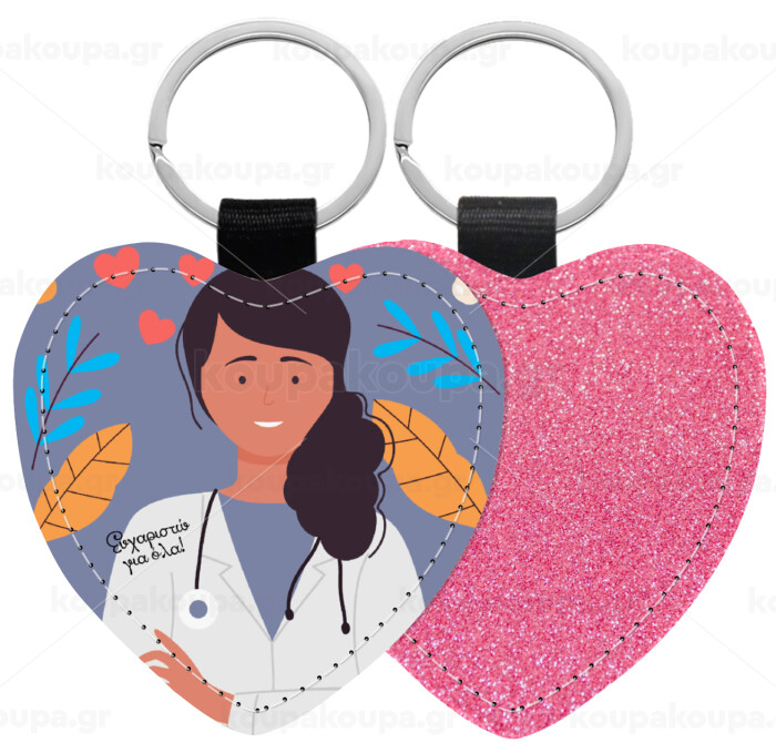 Ευχαριστώ για όλα γιατρέ, Μπρελόκ PU δερμάτινο glitter καρδιά ΡΟΖ