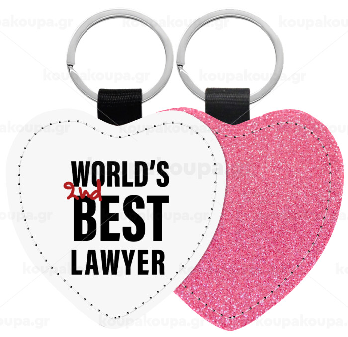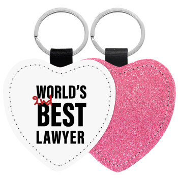 2nd, World Best Lawyer , Μπρελόκ PU δερμάτινο glitter καρδιά ΡΟΖ