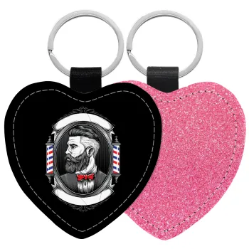 Barber shop, Μπρελόκ PU δερμάτινο glitter καρδιά ΡΟΖ