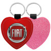 FIAT, Μπρελόκ PU δερμάτινο glitter καρδιά ΡΟΖ