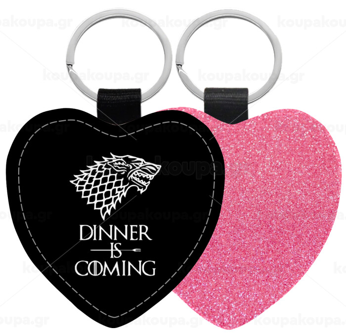 Dinner is coming (GOT), Μπρελόκ PU δερμάτινο glitter καρδιά ΡΟΖ