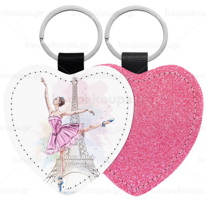 Ballerina in Paris, Μπρελόκ PU δερμάτινο glitter καρδιά ΡΟΖ