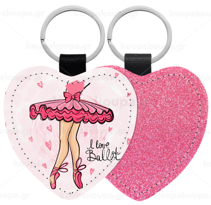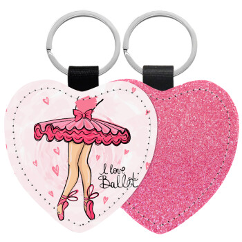 I Love Ballet, Μπρελόκ PU δερμάτινο glitter καρδιά ΡΟΖ